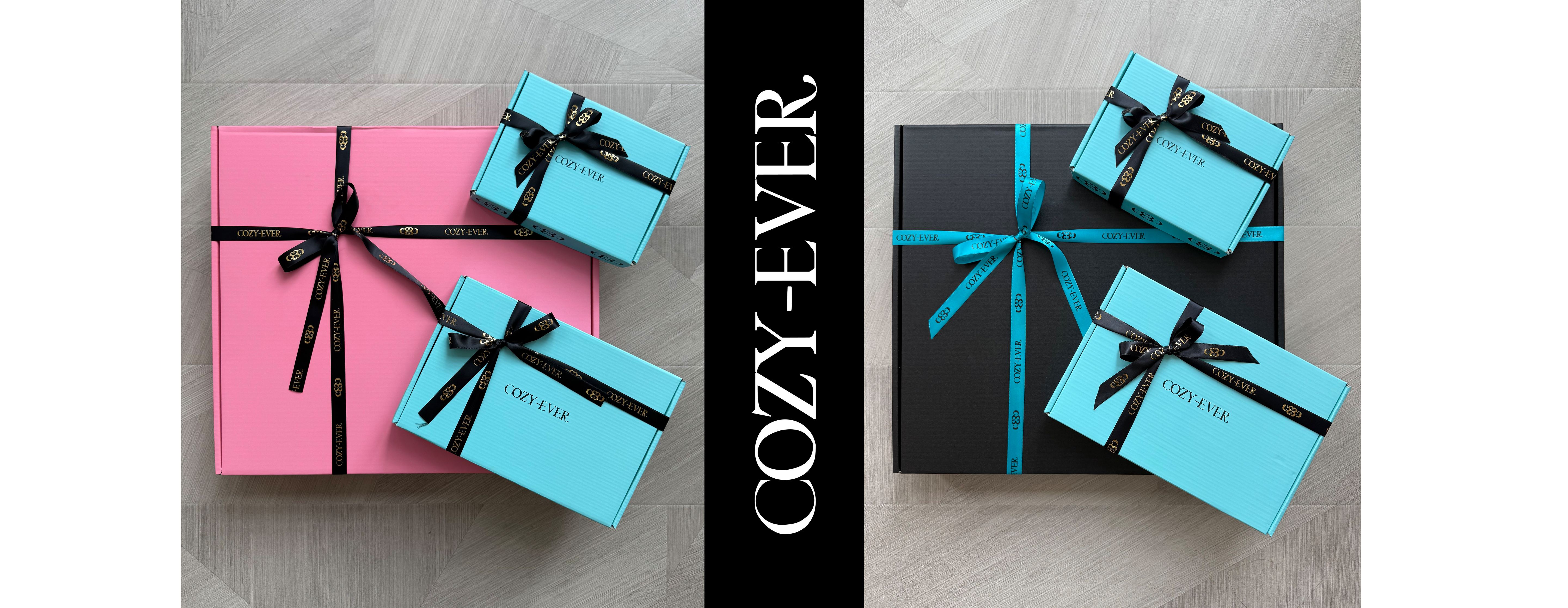 Each gift box is wrapped with COZY-EVER’s signature blue-and-black ribbon, using fully recyclable materials for a refined and sustainable luxury experience.